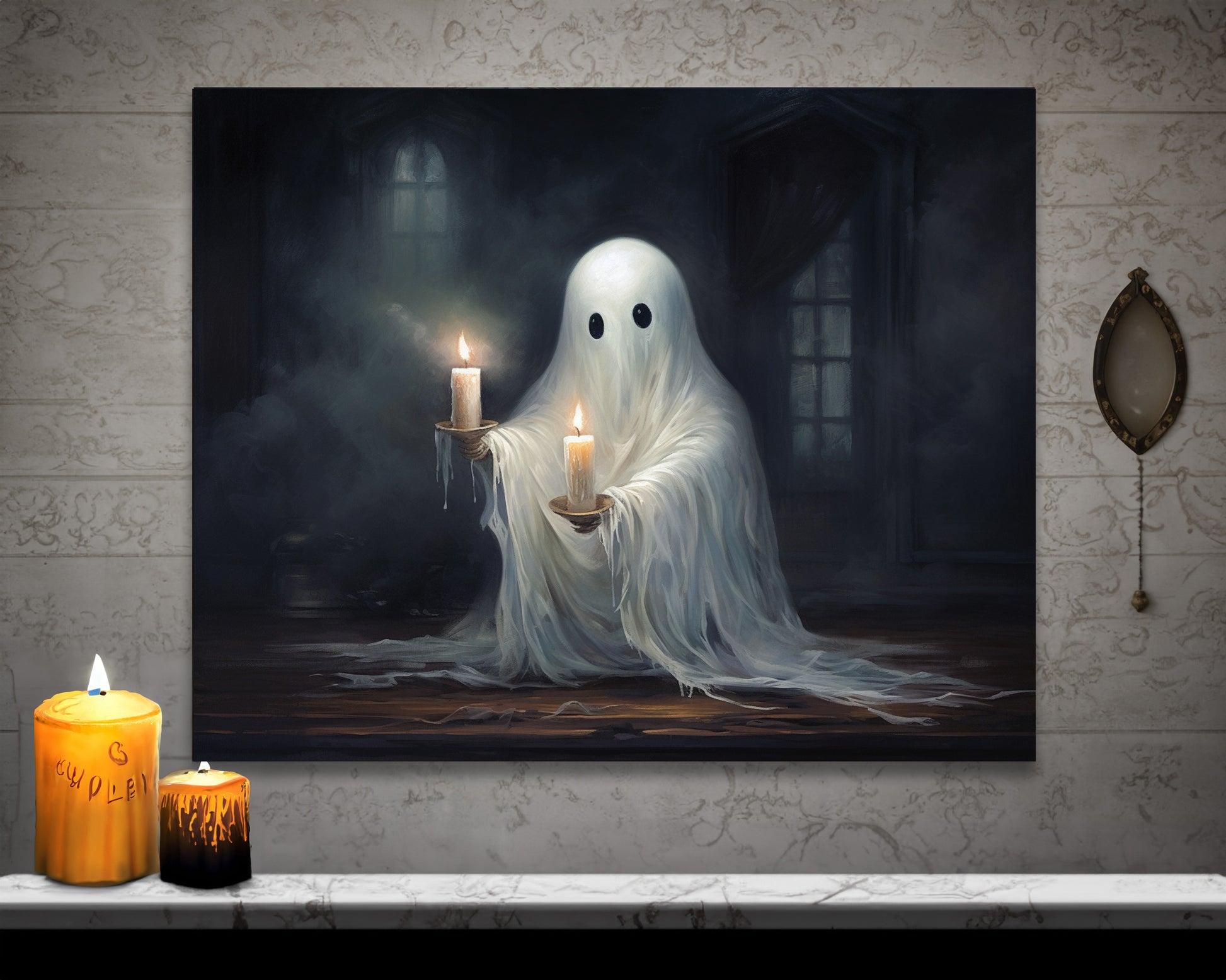 Ghost Holding A Candle Canvas Wall Art Halloween Decor