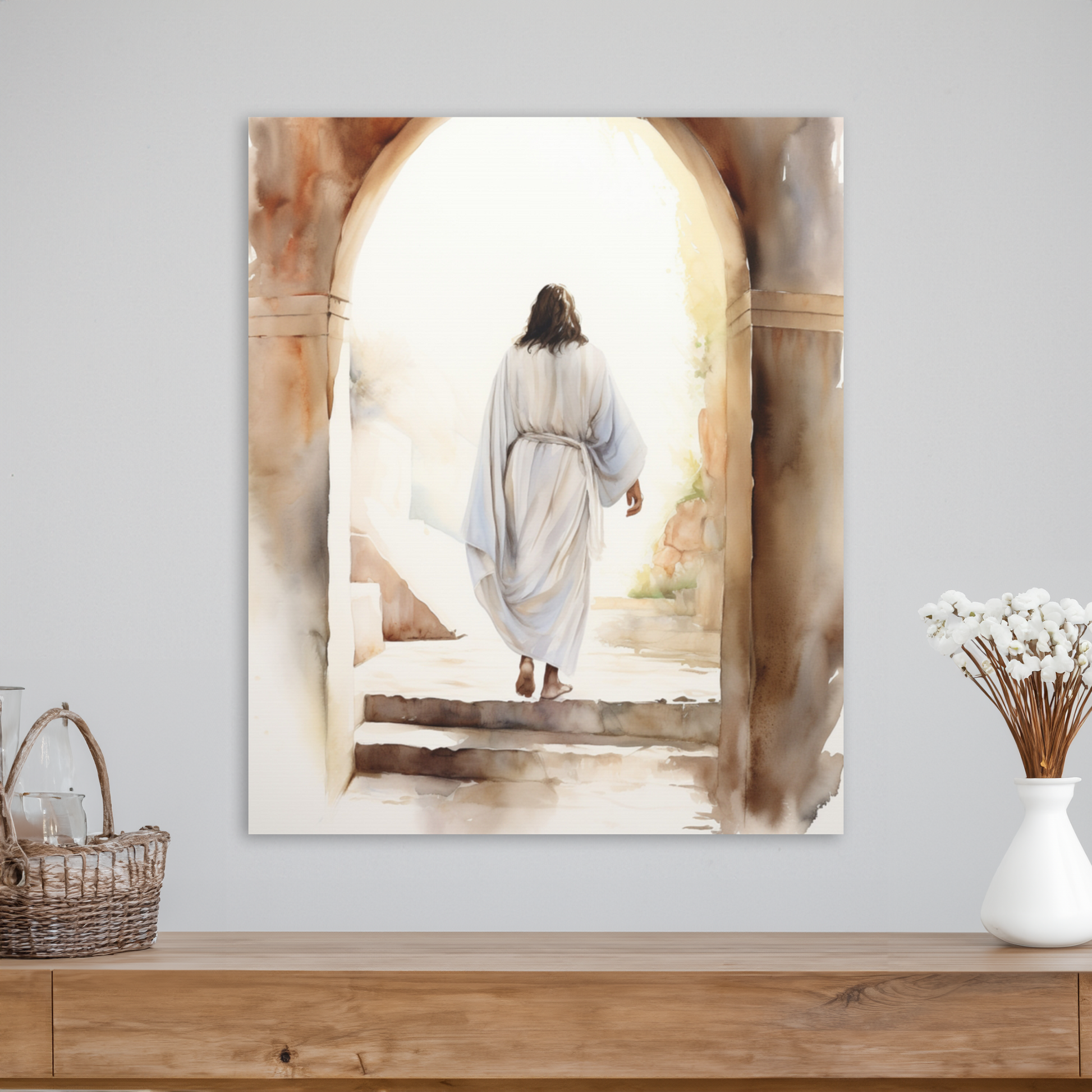 This beautiful, ready-to-hang Jesus Resurrected Canvas is stunning. Each Jesus Easter Painting is made with finely textured, artist-grade cotton substrate which helps reproduce your image in outstanding clarity and detail. Available in multiple sizes, these closed-back canvases are built with a patented, solid support face and are excellent to add to your bathroom decor.